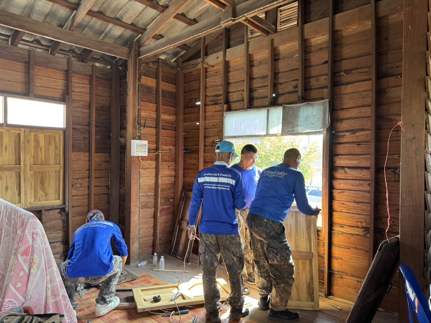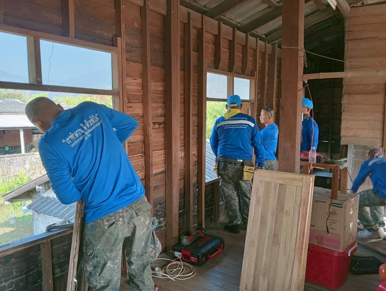 นำโดย นายญาณวุฒิ สุดพิมศรี นายอำเภอเมืองเชียงราย , มหาวิทยาลัยราชภัฏเชียงราย รศ.ดร.นาวิน พรมใจสา (รองอธิการบดีฯ / จิตอาสา 904) พร้อมด้วย ผอ.ราชันย์ ทนันชัย (ผอ.กองบริหารกายภาพฯ) นำกำลังพลจิตอาสาพระราชทานและเจ้าหน้าที่ ลงพื้นที่ปฏิบัติการซ่อมแซมบ้านพักอาศัยให้กับประชาชนผู้เดือดร้อน