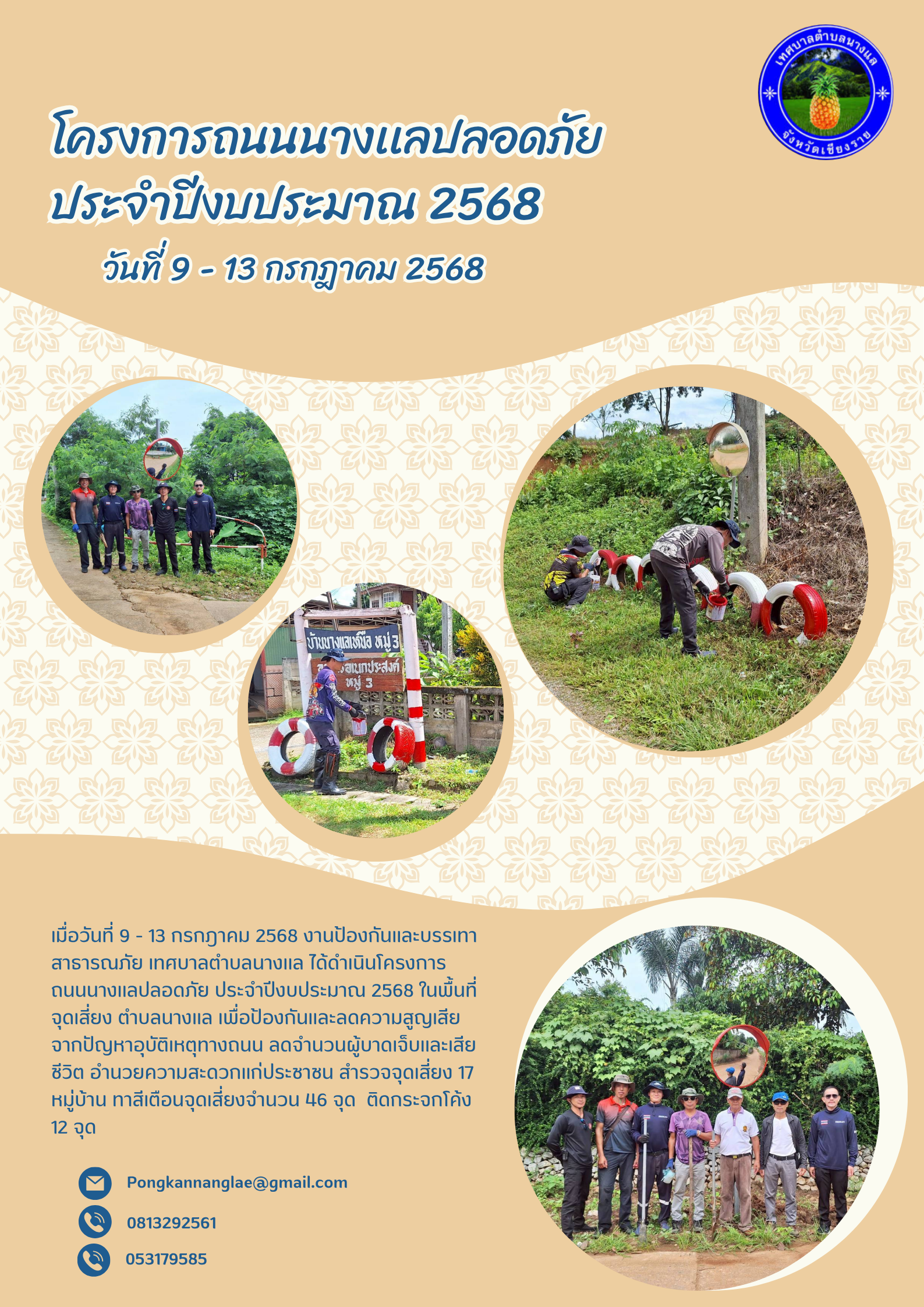 โครงการถนนนางแลปลอดภัย ประจำปีงบประมาณ 2568 วันที่ 9 - 13 กรกฏาคม 2568