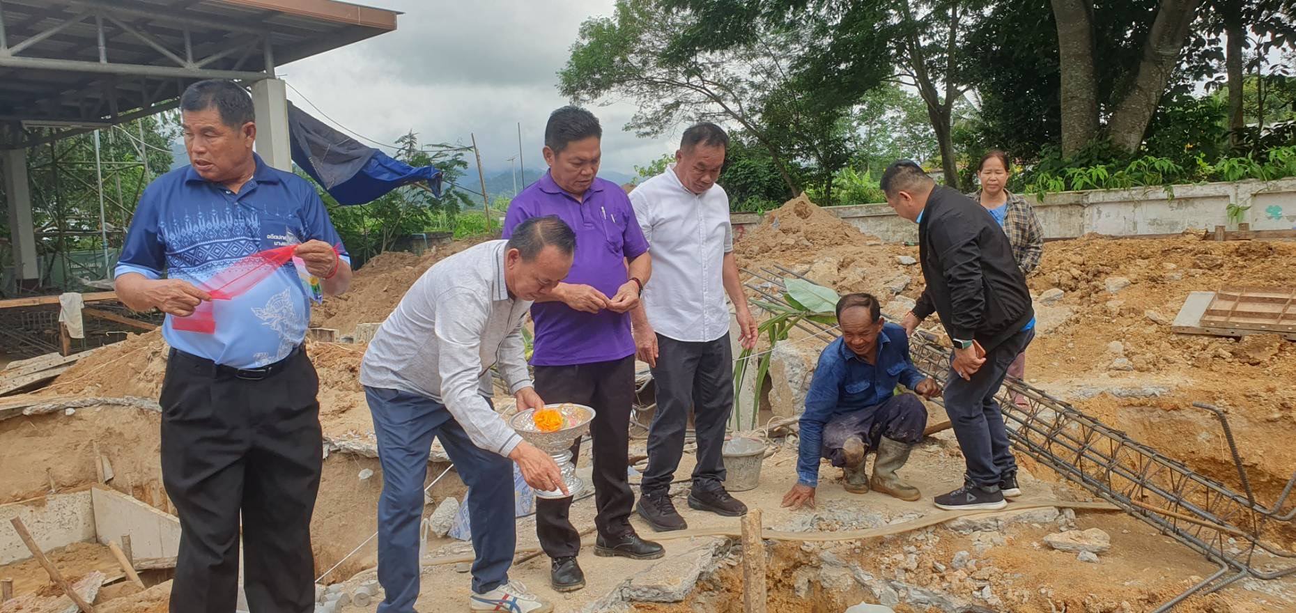 นายกเทศมนตรีตำบลนางแล ร่วมพิธีลงเสาเอก ก่อสร้างอาคารสำนักงาน เทศบาลตำบลนางแล
