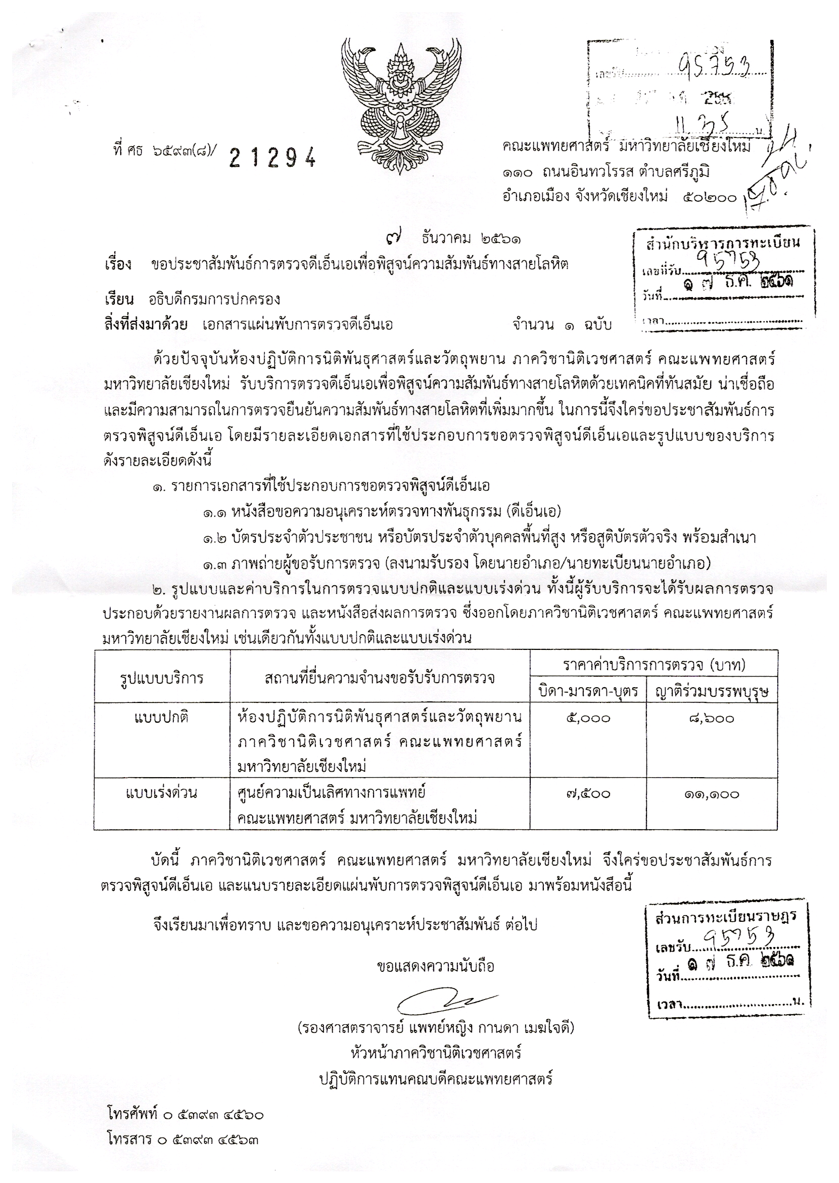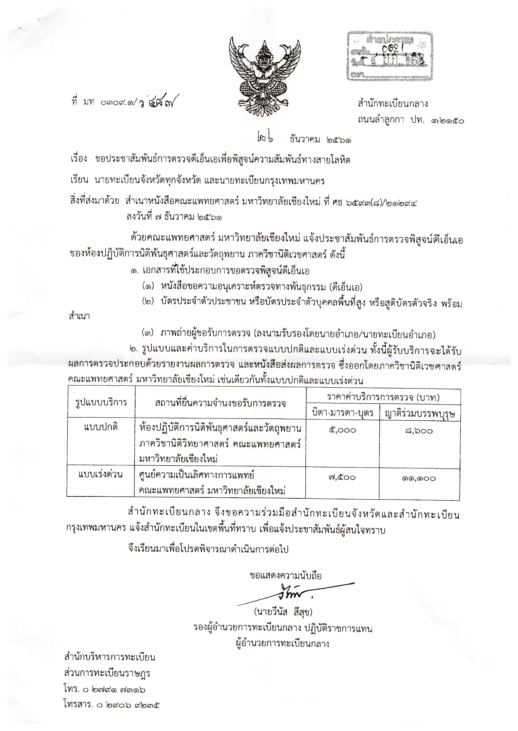 ประชาสัมพันธ์การตรวจดีเอ็นเอเพื่อพิสูจน์ความสัมพันธ์ทางสายโลหิต