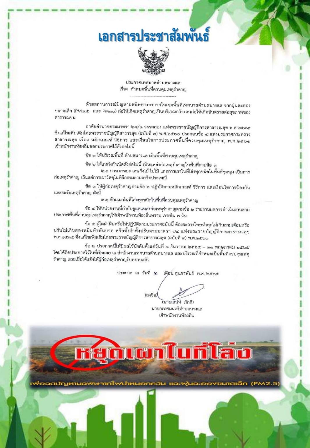 ประกาศเทศบาลตำบลนางแล เรื่อง กำหนดพื้นที่ควบคุมเหตุรำคาญ