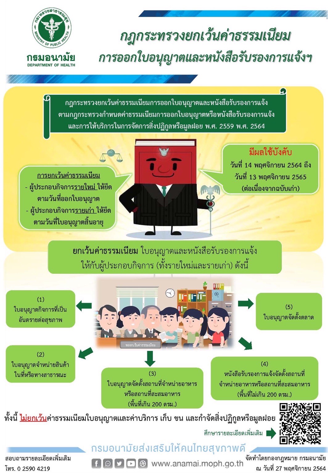 กฏกระทรวงยกเว้นค่าธรรมเนียมการออกใบอนุญาตและหนังสือรับรองการแจ้ง ตามกฏกระทรวงกำหนดค่าธรรมเนียมการออกใบอนุญาตหรือหนังสือรับรองการแจ้งและการให้บริการในการจัดการสิ่งปฏิกูลหรือมูลฝอย พ.ศ.2559 พ.ศ.2564