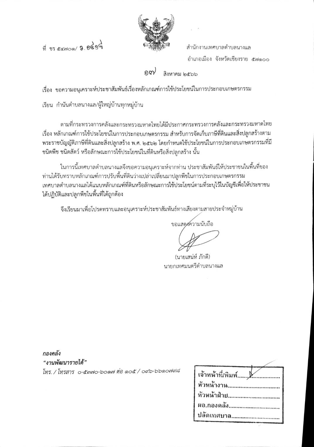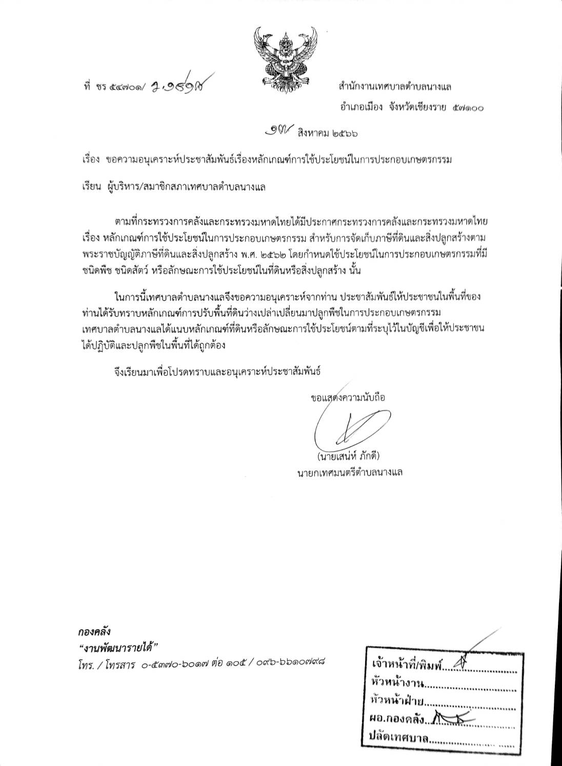 ประชาสัมพันธ์ เรื่องหลักเกณฑ์การใช้ประโยชน์ในการประกอบเกษตรกรรม