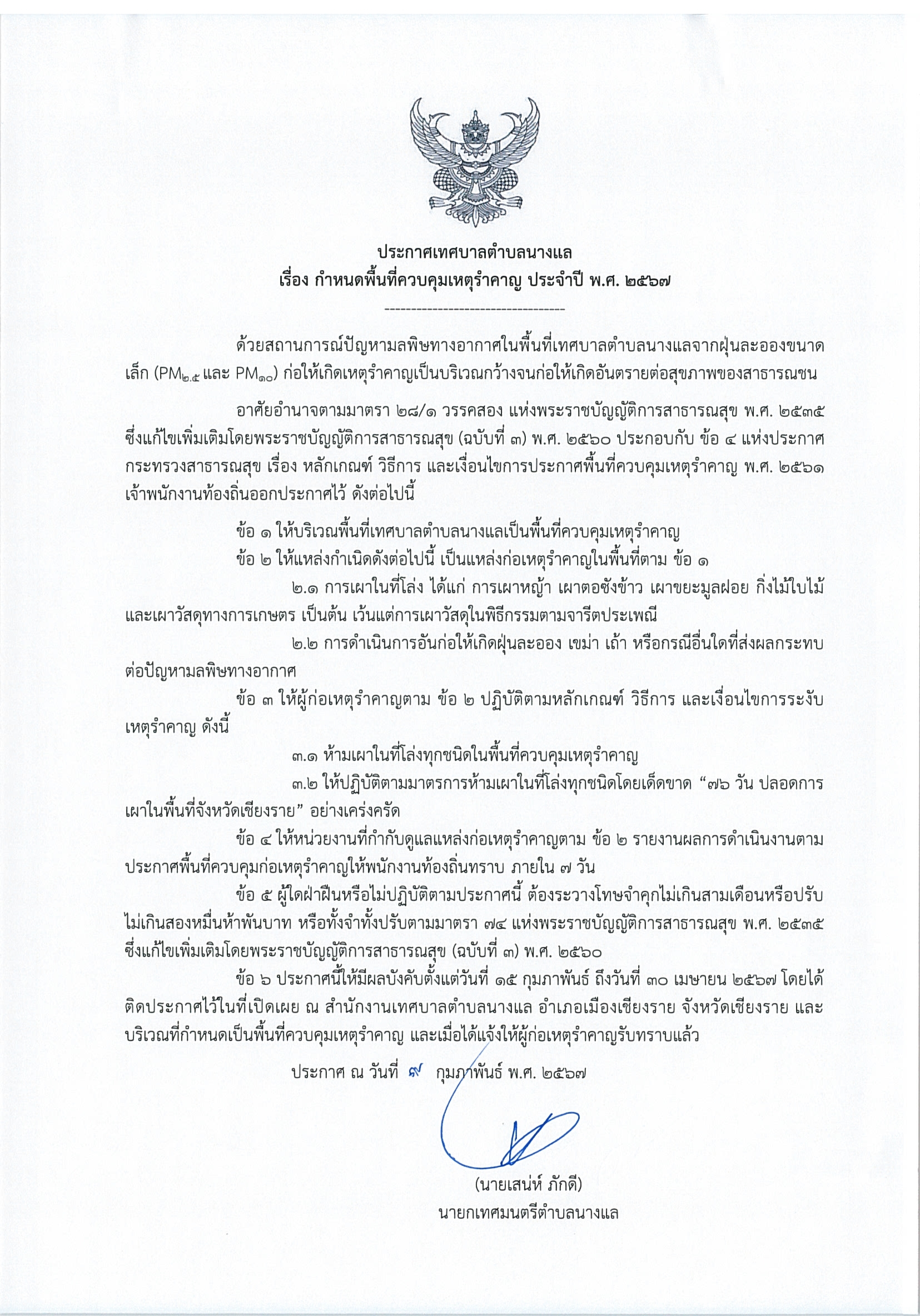 ประกาศกำหนดพื้นที่ควบคุมเหตุรำคาญ ประจำปี พ.ศ.2567