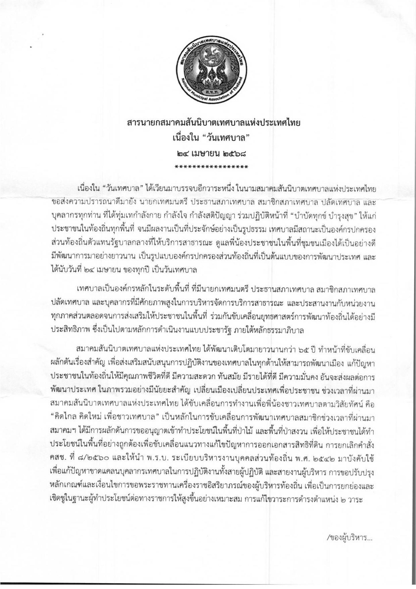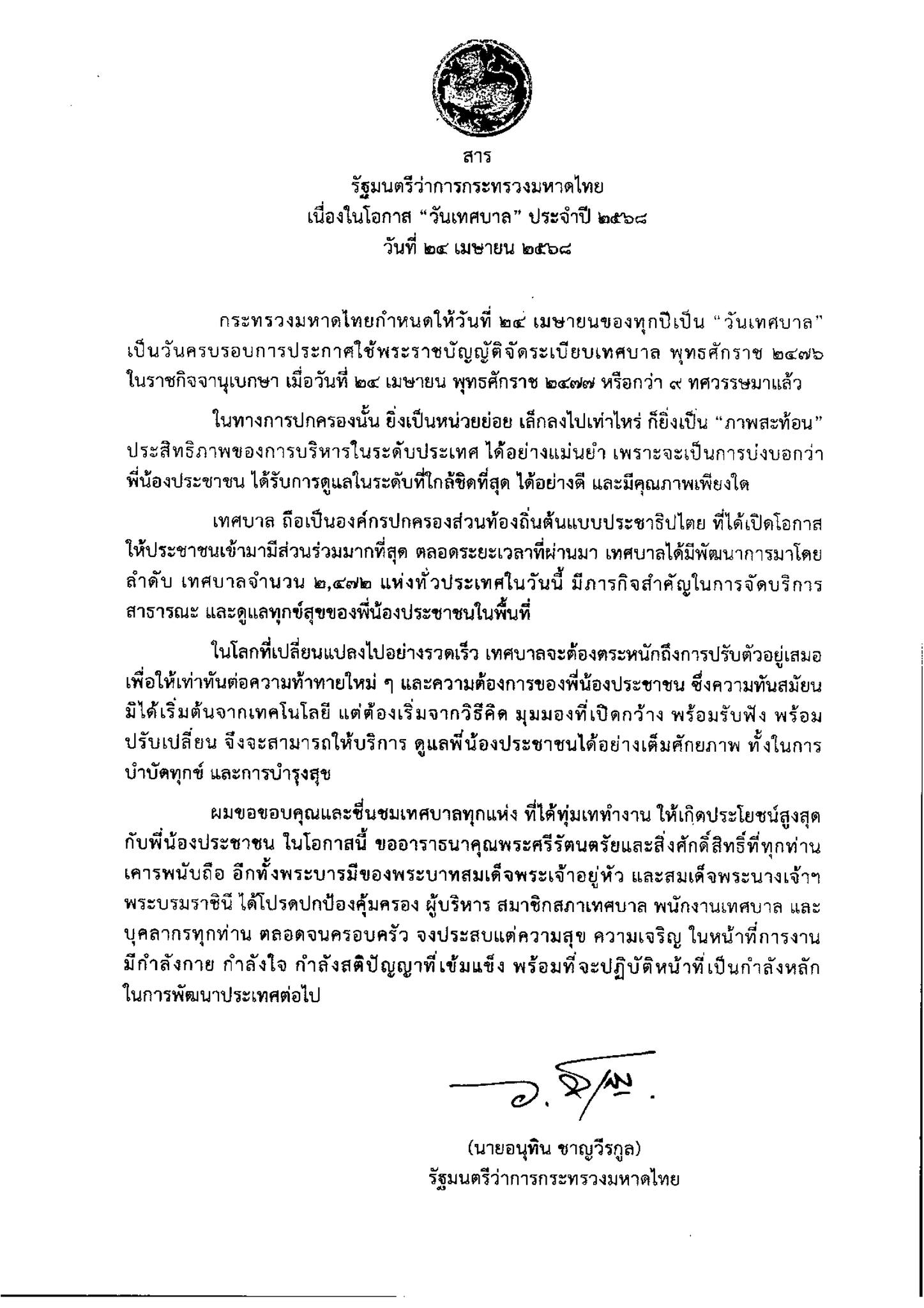สารเนื่องในโอกาศ "วันเทศบาล" ประจำปี 2568 วันที่ 24 เมษายน 2568