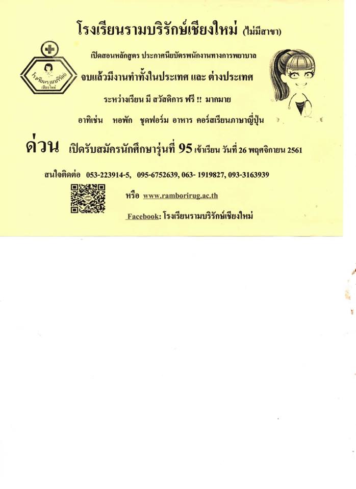 โรงเรียนรามบริรักษ์ เชียงใหม่ ประชาสัมพันธ์หลักสูตรบริบาลญี่ปุ่น 1 ปี
