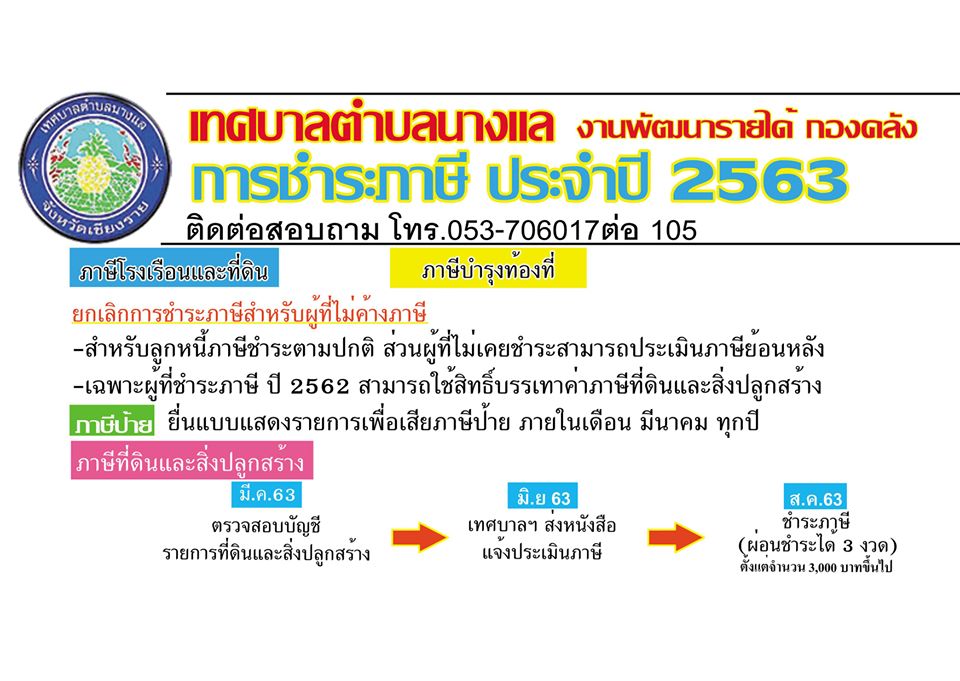 สอบถามข้อมูลเพิ่มเติมที่ งานจัดเก็บรายได้ กองคลัง เทศบาลตำบลนางแล หรือ โทร 053-706017 ต่อ 105