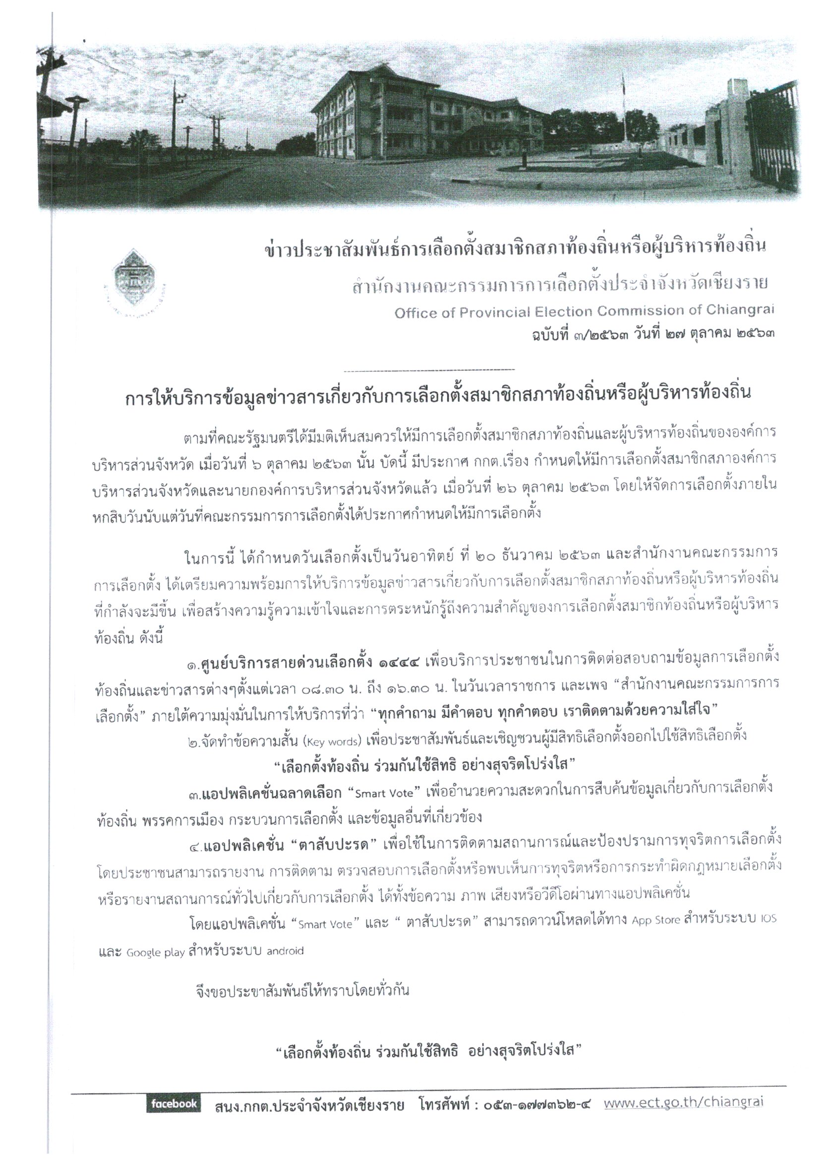 ข่าวประชาสัมพันธ์การเลือกตั้งสมาชิกสภาท้องถิ่นหรือผู้บริหารท้องถิ่น