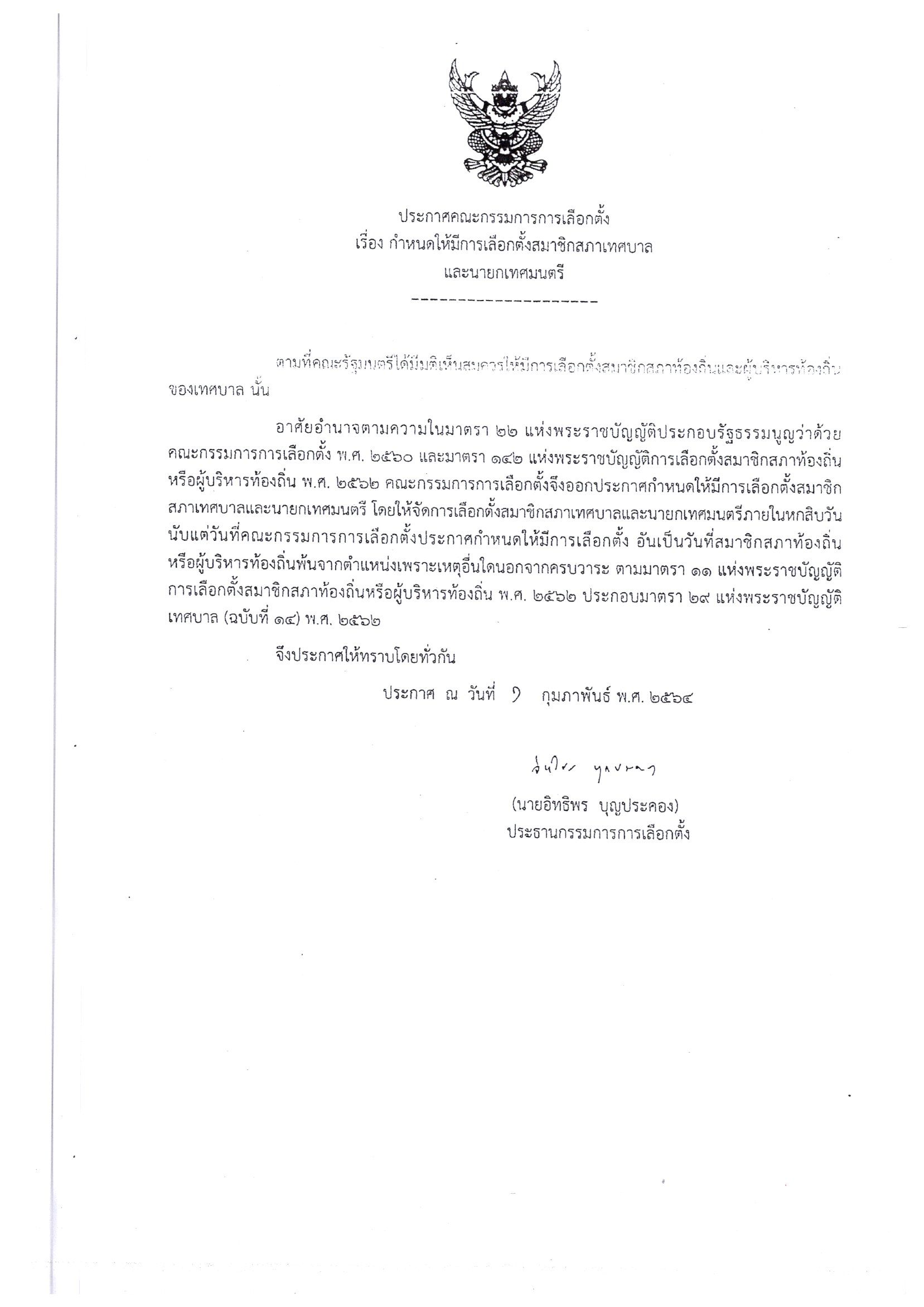 ประชาสัมพันธ์ ประกาศคณะกรรมการการเลือกตั้ง เรื่อง กำหนดให้มีการเลือกตั้งสมาชิกสภาเทศบาลและนายกเทศมนตรี