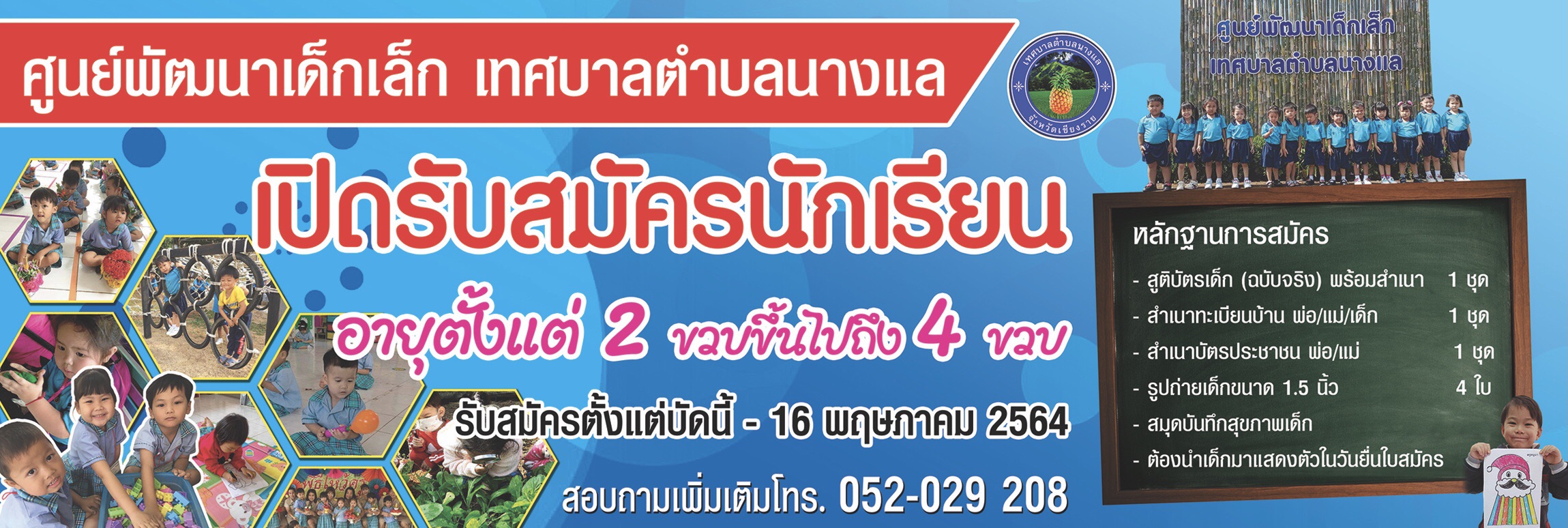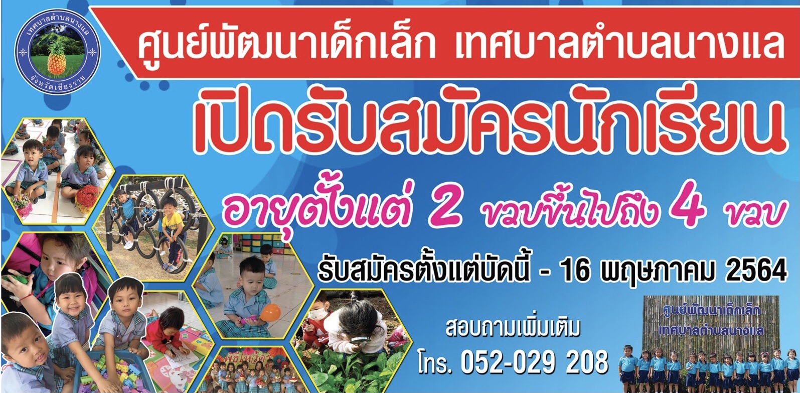 ประชาสัมพันธ์ เปิดรับสมัครนักเรียนศูนย์พัฒนาเด็กเล็ก เทศบาลตำบลนางแล